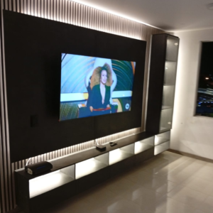 Muebles funcionales y modernos que organizan tu sala y realzan tu espacio de entretenimiento.
