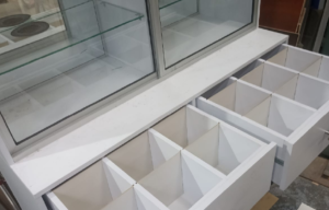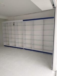 Estanterías personalizadas en madera, con opciones en acero, aluminio y vidrio, que ofrecen resistencia, elegancia y un diseño contemporáneo.