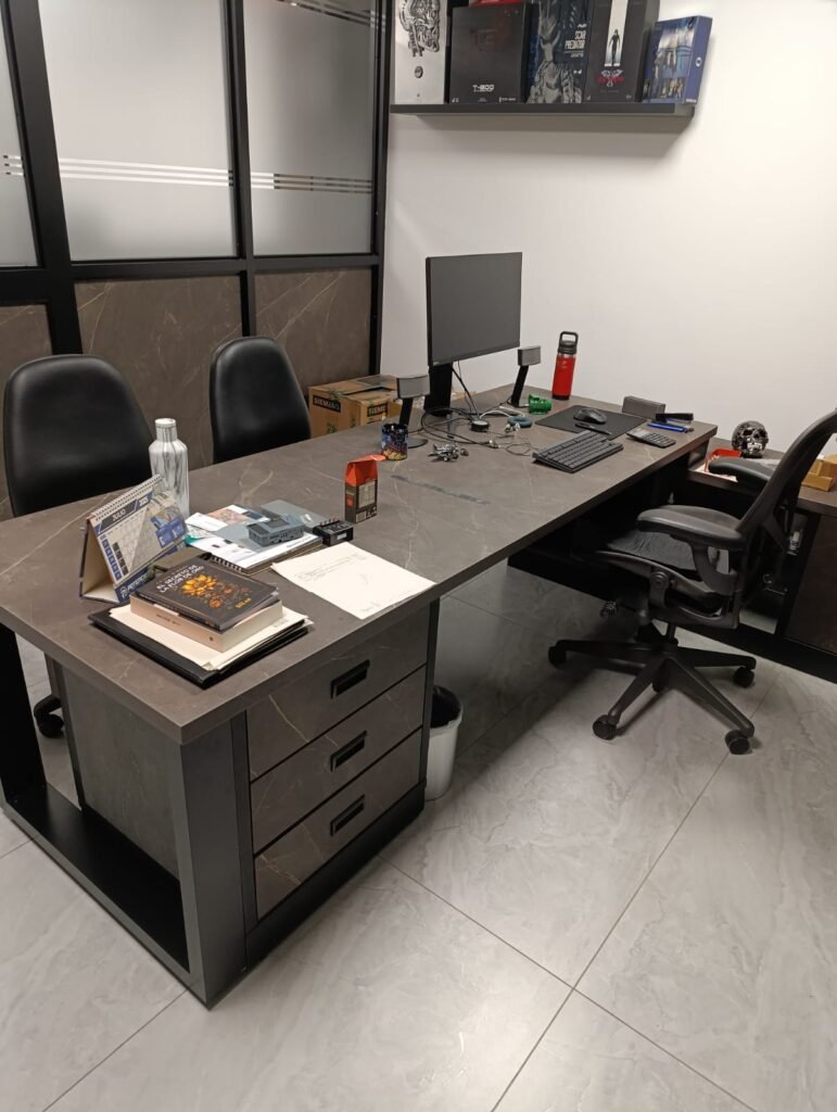 Escritorios a medida en madera o combinados con acero, aluminio y vidrio, diseñados para ofrecer funcionalidad, confort y un estilo sofisticado en hogares y espacios corporativos.