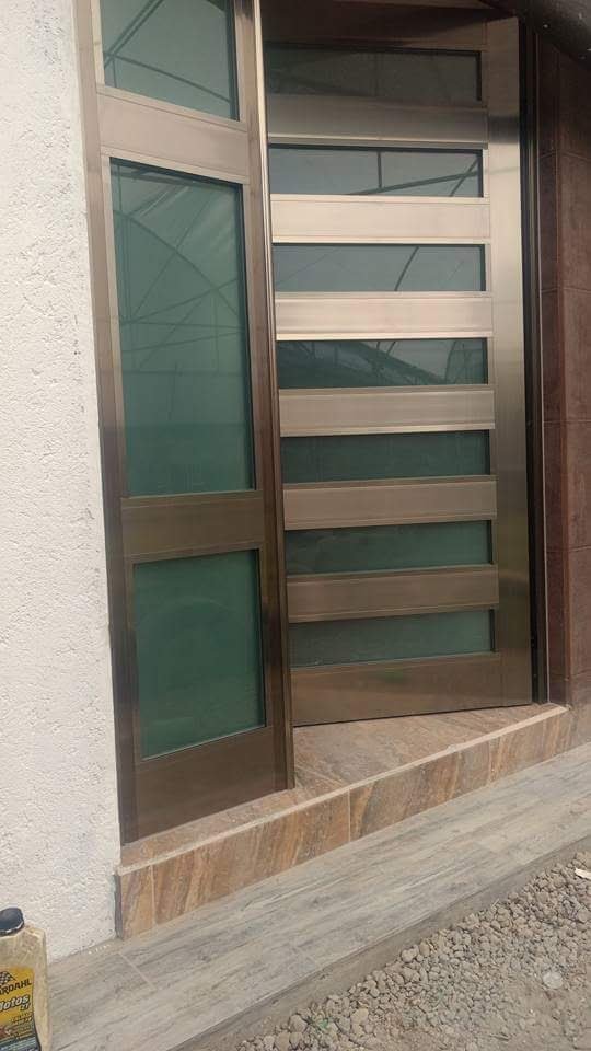 PUERTAS Y VENTANAS Puertas en Madera Puertas fabricadas en madera de alta calidad, que ofrecen calidez, seguridad y un diseño elegante para proyectos residenciales y comerciales. Puertas en Vidrio Puertas en vidrio templado que aportan luminosidad, modernidad y amplitud, ideales para espacios contemporáneos. Puertas con Estructura en Aluminio Puertas con perfilería en aluminio combinada con vidrio o madera, que garantizan resistencia, durabilidad y un acabado sofisticado. Ventanas Ventanas en aluminio y vidrio diseñadas para brindar iluminación natural, aislamiento y un estilo moderno y funcional.