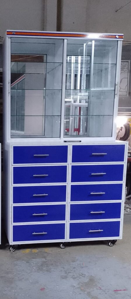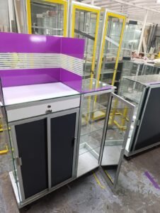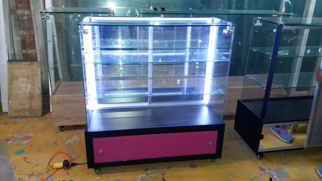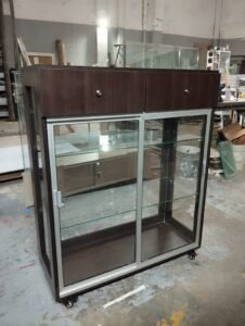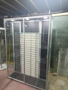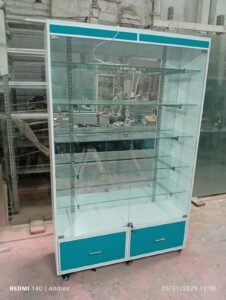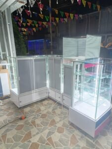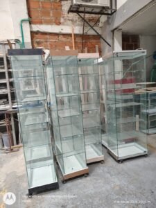 VITRINAS Vitrinas en Vidrio Vitrinas elegantes y funcionales, fabricadas en vidrio de alta calidad, ideales para exhibir y proteger productos o piezas decorativas. Vitrinas con Iluminación LED Vitrinas con luces integradas que realzan cada detalle, perfectas para espacios comerciales y residenciales que buscan una presentación sofisticada. Vitrinas en Vidrio y Estructuras Mixtas Diseños exclusivos en vidrio combinados con madera, acero o aluminio, que ofrecen resistencia, modernidad y un acabado premium. Estanterías en Vidrio Estanterías modernas y minimalistas en vidrio, ideales para exhibición elegante en tiendas, oficinas y hogares.